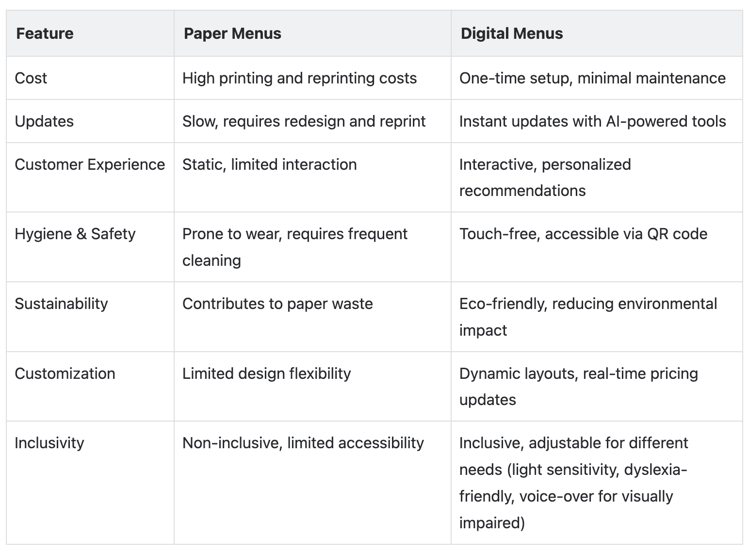 Paper Menu vs. Digital Menus: A Side-by-Side Comparison