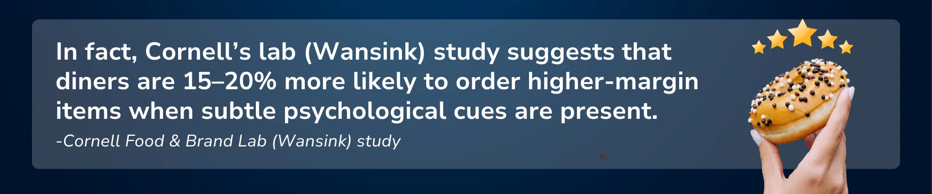 In fact, Cornell’s lab (Wansink) study suggests that diners are 15–20% more likely to order higher-margin items when subtle psychological cues are present. That’s not an accident, that’s emotional engineering on a plate.