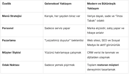 Gördüğün gibi, günlük restoran müşteri sayısını artırmak tek bir sihirli değnekle değil, bir orkestra şefi gibi tüm enstrümanları doğru yönetmekle mümkündür. Mutfaktaki lezzet, salondaki güler yüz, mekandaki atmosfer ve dijitaldeki güçlü duruşun... Bunların hepsi birbirini besleyen çarklardır.